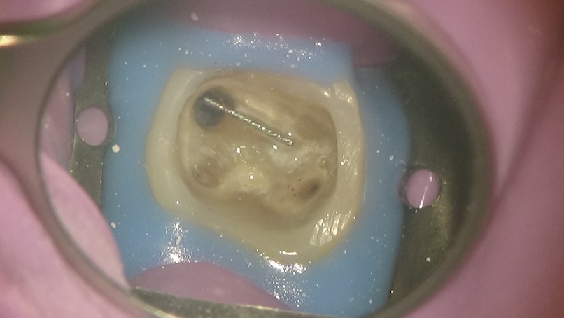 Q. 通常の根管治療とマイクロエンドは違うの?A. 全く別の治療と言っても過言ではありませんMB根管(左上の穴)に光る何かがあるぞ…もしや…破折ファイルだな。超音波チップで摘出を試みま…